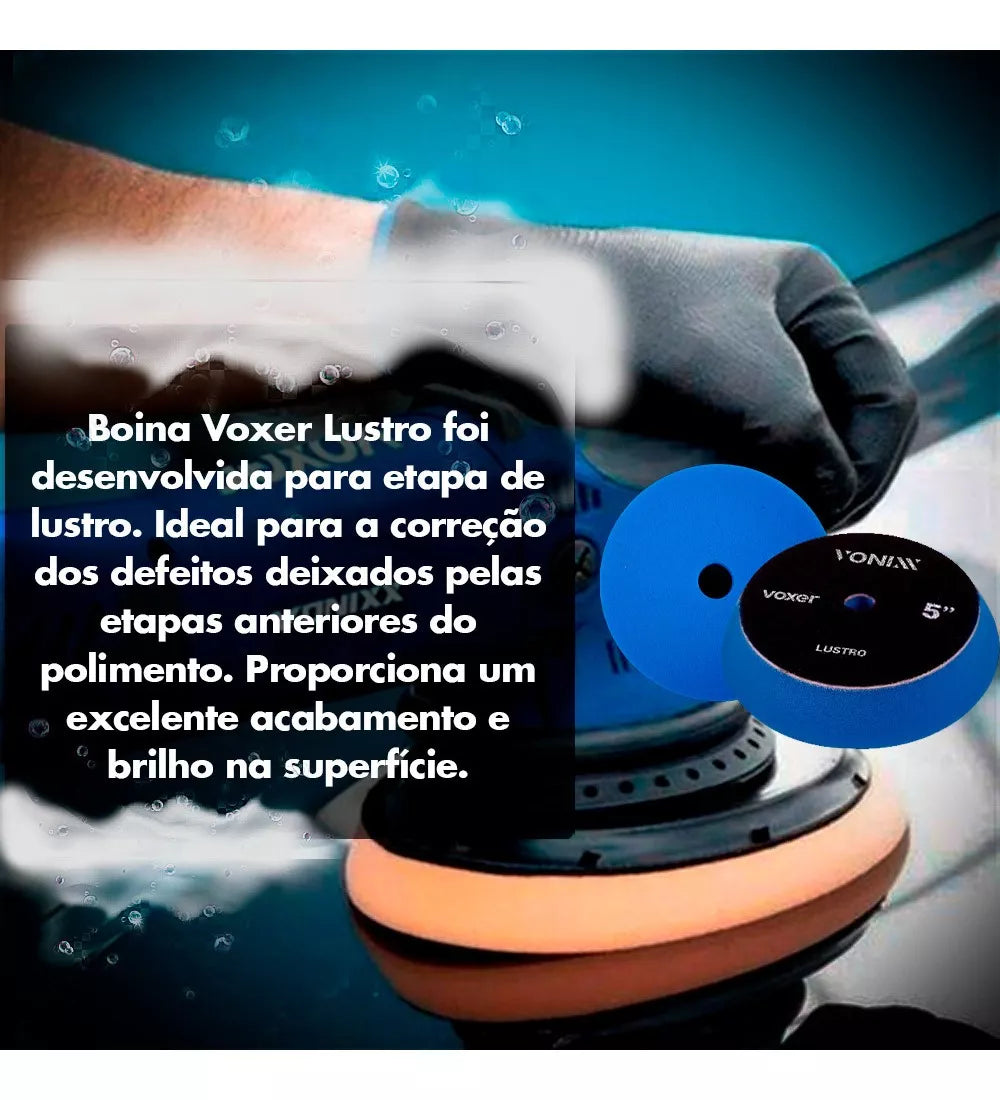 Boina Voxer Lustro foi desenvolvida para etapa de lustro. Ideal para a correção dos defeitos deixados pelas etapas anteriores do polimento. Proporciona um excelente acabamento e brilho na superfície.